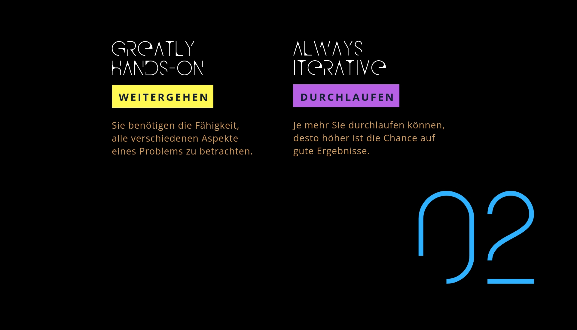 Hören Sie auf zu diskutieren, fangen Sie an zu arbeiten. Ideen erlebbar machen Prototyping denkt mit Ihren Händen. Testen Sie Ihre Hypnotisierungen. Misserfolg ist Teil des Prozesses, um erfolgreich zu sein. Experimente mit Versuch und Irrtum sind der Schlüssel.